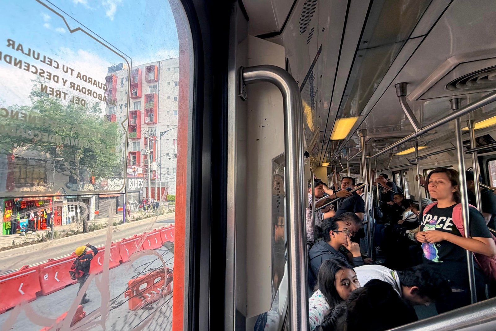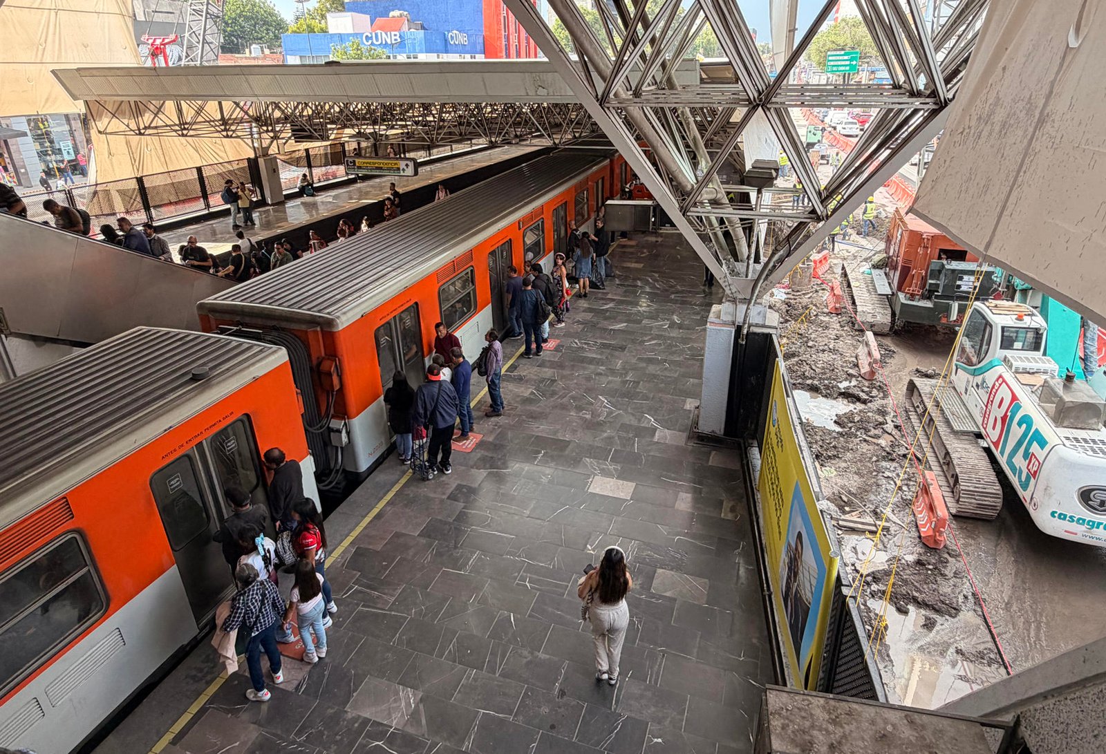 Personas observan desde el sistema de Transporte Colectivo (Metro) las obras de remodelación de la Calzada de Tlalpan este martes, en Ciudad de México (México). A dos meses del inicio del Mundial de Fútbol 2026, el impacto de las obras se siente notablemente en la Ciudad de México, una de las sedes del torneo, donde vecinos reportan vibraciones y daños en sus viviendas, además de polvo constante y ruido excesivo. EFE/ Sáshenka Gutiérrez