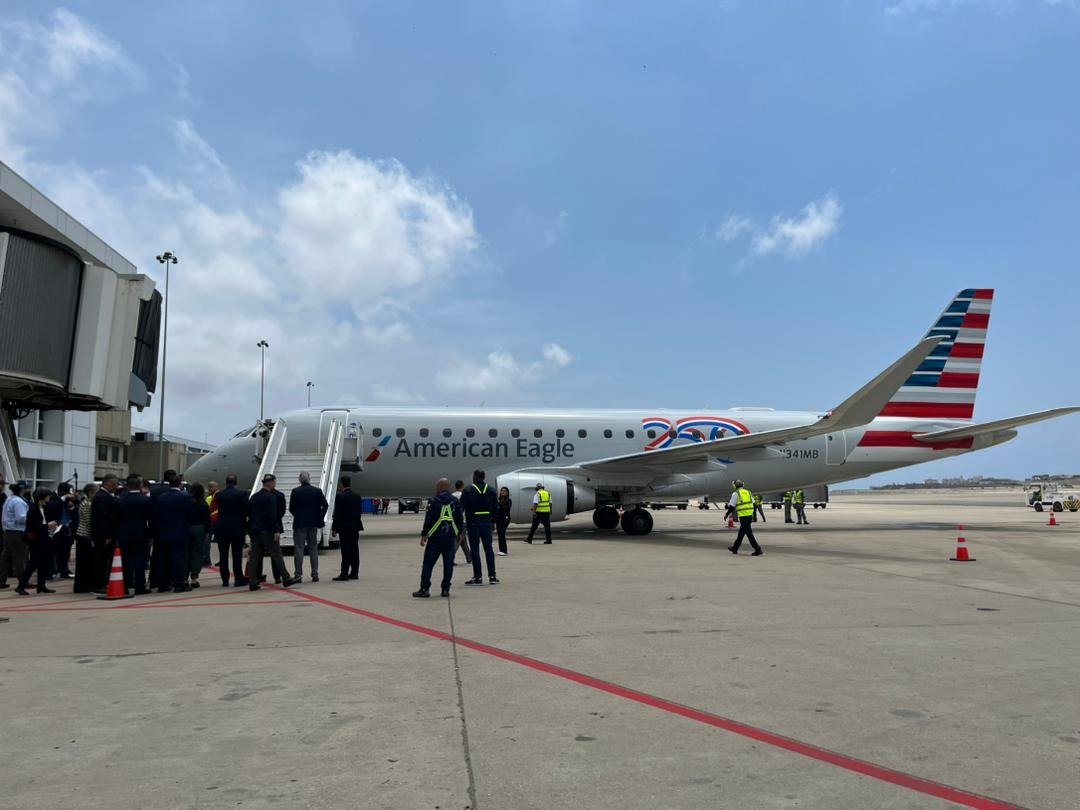 El primer vuelo comercial directo de la aerolínea American Airlines proveniente de Estados Unidos aterrizó este jueves a la 1:15 de la tarde en el aeropuerto Internacional Simón Bolívar de Maiquetía luego de siete años de interrupción operativa.
