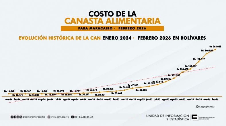 LEE TAMBIÉN: Canasta Alimentaria en Maracaibo aumentó 23,40 % en bolívares durante el transcurso de enero 2026