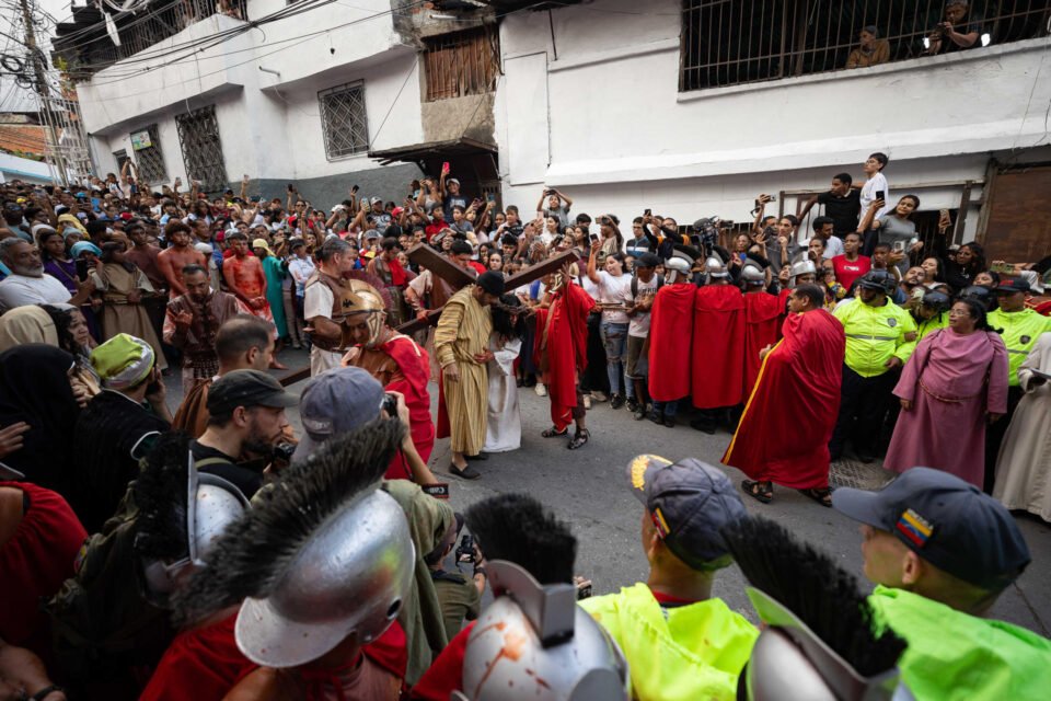 Miles de personas acompañaron este viernes en el barrio caraqueño de Petare, considerado la favela más grande de Venezuela, la tradicional representación del viacrucis que jóvenes y líderes religiosos han organizado durante 40 años en las empinadas cuestas de este barrio para conmemorar la pasión de Cristo.