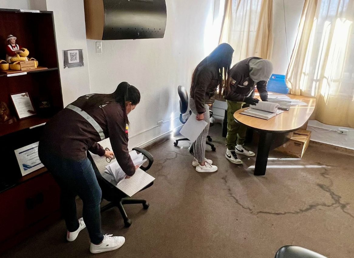 El Ministerio Público adjuntó en su mensaje cuatro fotografías en las que se aprecia a agentes en las instalaciones revisando documentos.