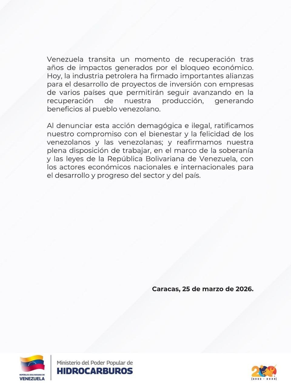 Ante esto, el chavismo evitó responder directamente a los planteamientos técnicos o económicos de la iniciativa. En su lugar, defendió el modelo actual, insistiendo en que los hidrocarburos son un “patrimonio irrenunciable” de Venezuela.