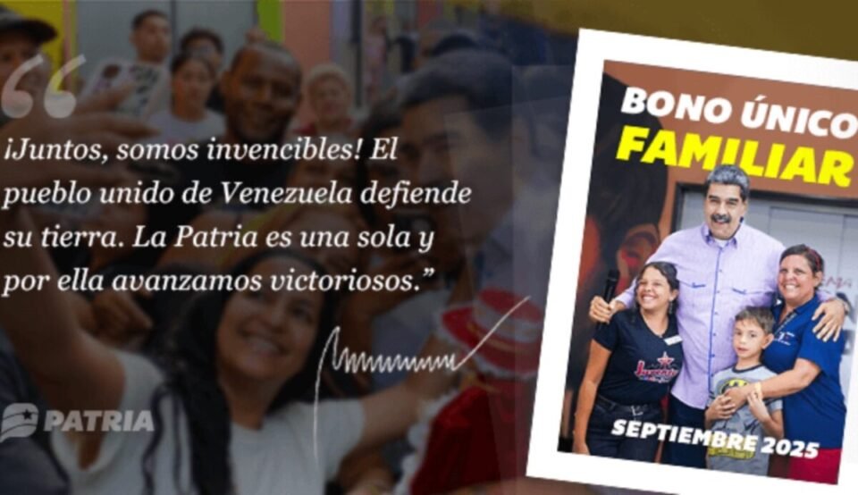 El Sistema Patria anunció el martes 2 de septiembre la entrega del bono “Único Familiar” correspondiente a septiembre de 2025, dirigido a hogares vulnerables.