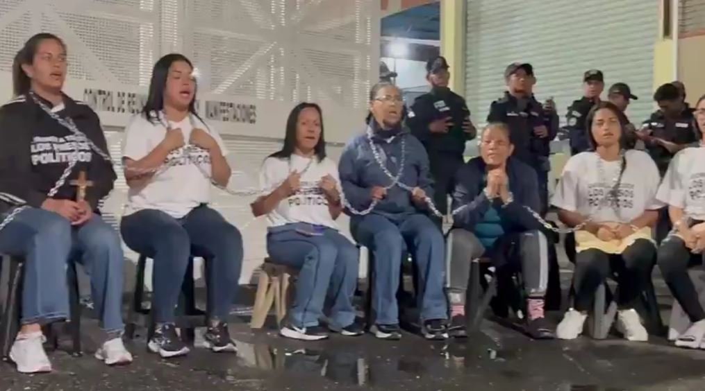 A través de videos compartidos en redes sociales, se pudo observar a madres, esposas y allegados encadenándose, mostrando su determinación por presionar por la libertad de los detenidos.