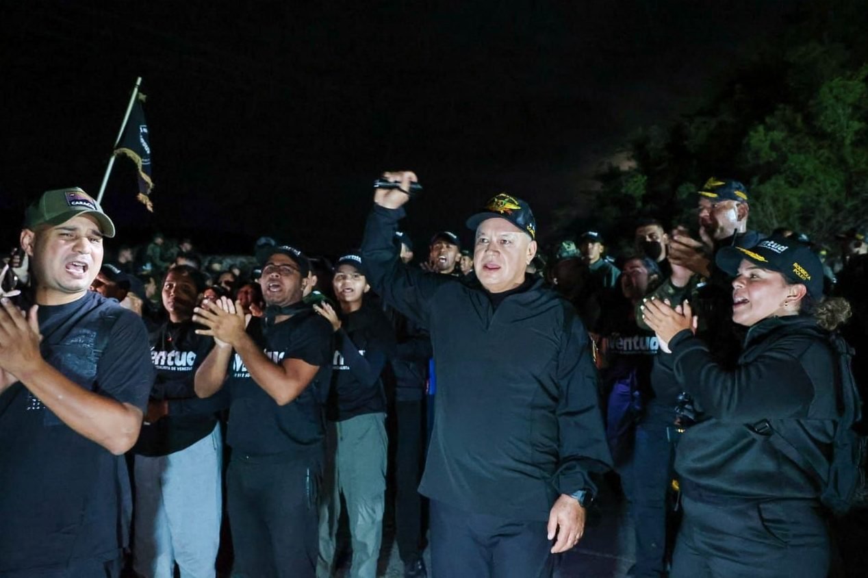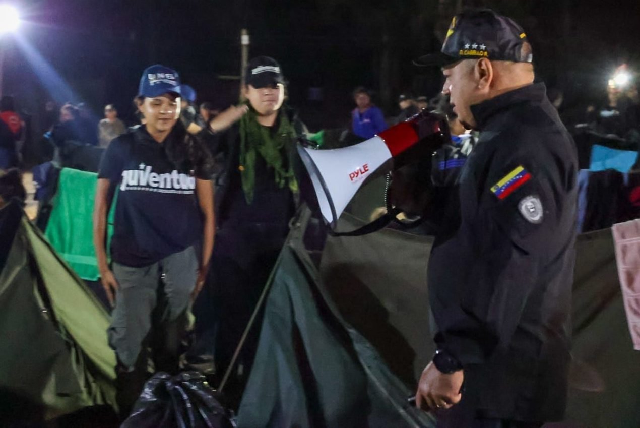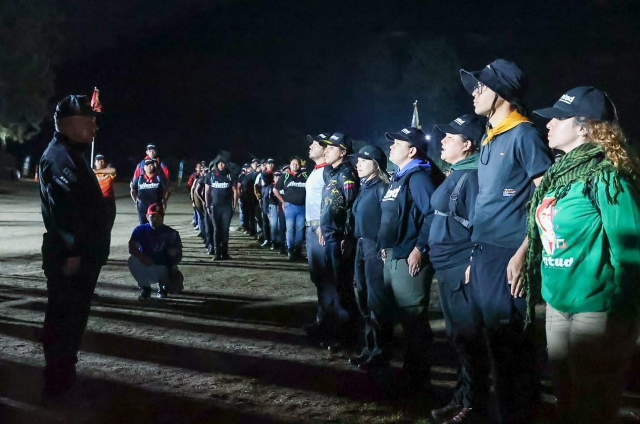 El vocero chavista lideró una caminata nocturna realizada en la parroquia Macarao, al oeste de Caracas, por parte de los jóvenes militantes del campamento de «Entrenamiento Básico de Resistencia Revolucionaria».