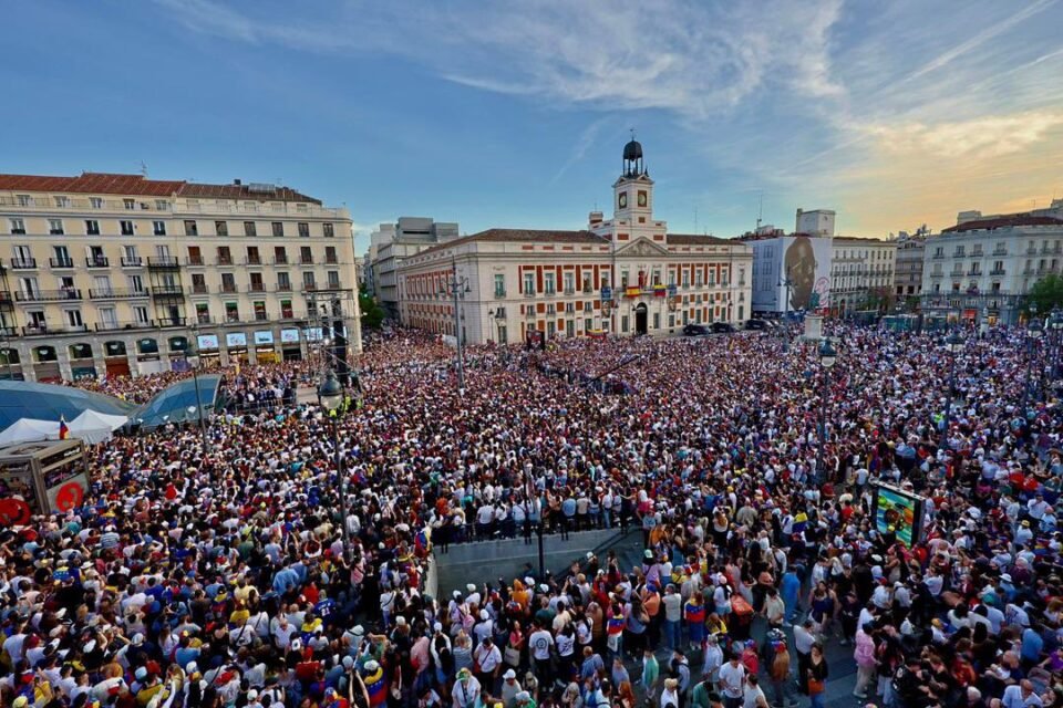 Venezolanos desbordaron la Puerta del Sol en Madrid tras histórico encuentro con la líder María Corina Machado. Foto X: @VenteVenezuela