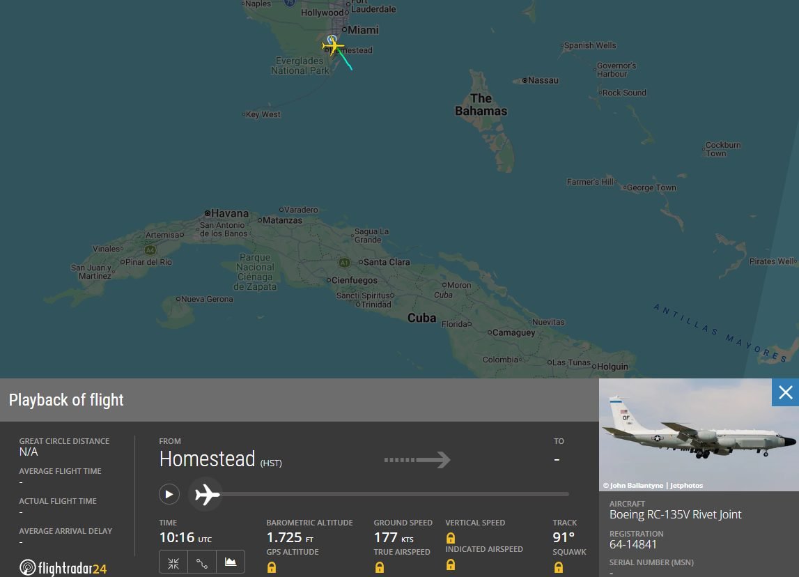 Según datos del rastreador digital FlightRadar24, la avanzada aeronave de reconocimiento despegó a tempranas horas desde la Base de Reserva Aérea de Homestead, ubicada en Miami-Dade, Florida.
