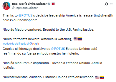 A través de su cuenta en X, la congresista fue directa con grupos dedicados al tráfico de drogas y al terrorismo: «Narcoterroristas, cuidado: Estados Unidos está observando».