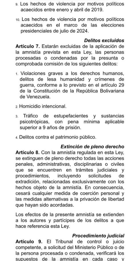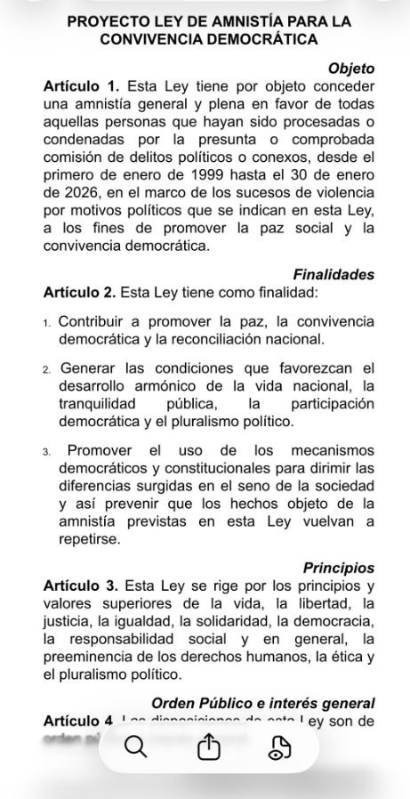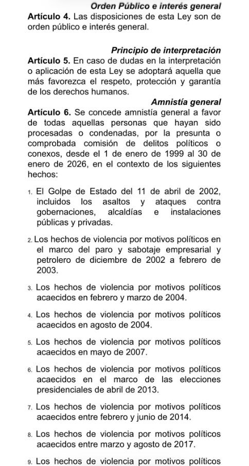 «Hacemos público el proyecto de Ley de Amnistía, con el cual iniciaremos el trabajo legislativo de la Comisión Especial designada para tal fin, de la cual formamos parte», comentó Florido en una publicación donde adjuntó capturas del texto.