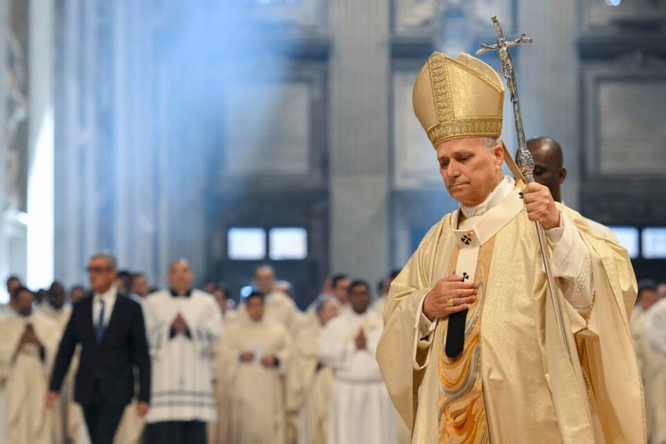 Una fotografía facilitada por Vatican Media muestra al Papa León XIV (derecha) durante una Santa Misa con ordenaciones sacerdotales en la Basílica de San Pedro, Ciudad del Vaticano, el 26 de abril de 2026. (Papa) EFE