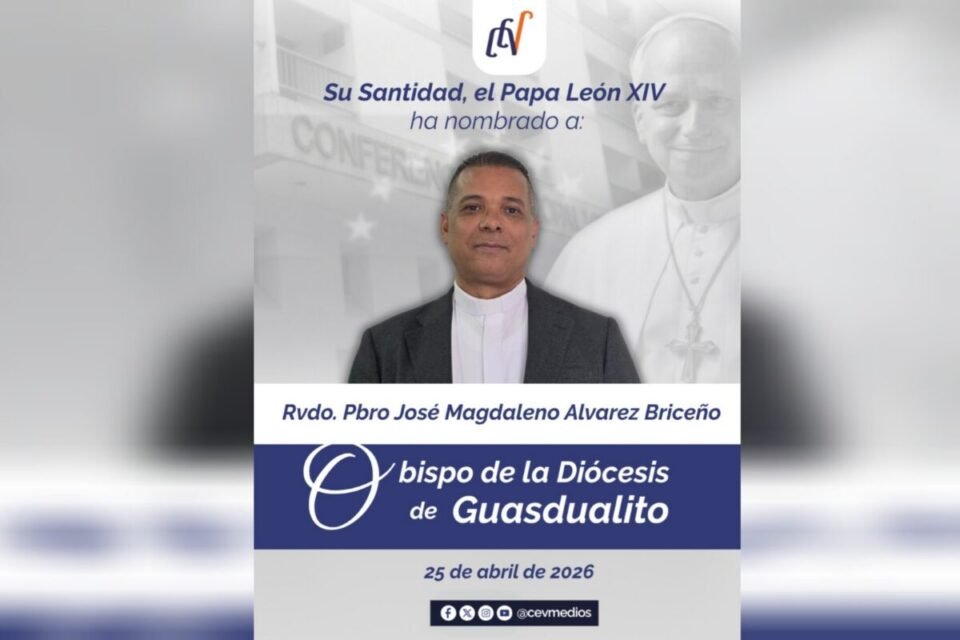 La Conferencia Episcopal Venezolana (CEV) informó que el papa León XIV nombró al presbíteroJosé Magdaleno Álvarez Briceño como nuevo obispo de la diócesis de Guasdualito, en Apure.