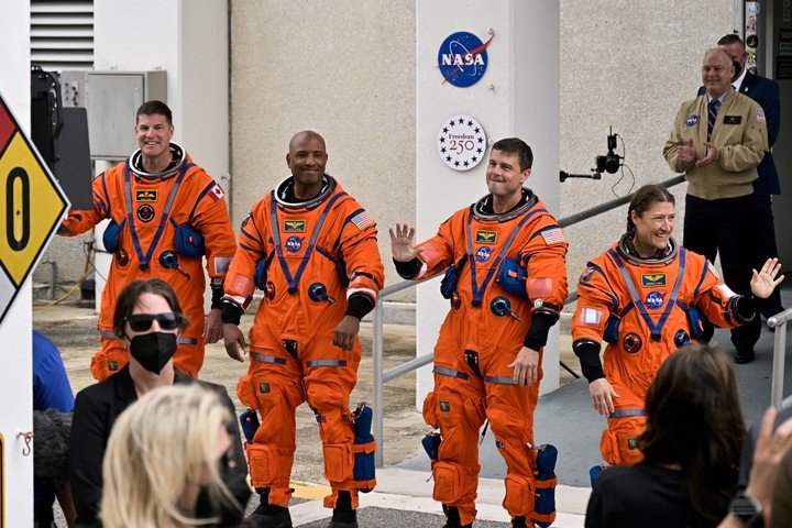 No se trata de cualquier tono. Es el llamado “Naranja Internacional”, un color diseñado para destacar en condiciones extremas. Reid Wiseman, Victor Glover, Christina Koch y Jeremy Hansen lo llevarán al iniciar su viaje desde el Centro Espacial Kennedy y también al regresar, tras una travesía de diez días que los llevará más lejos de lo que el ser humano ha llegado.