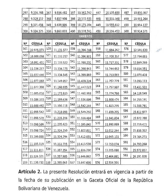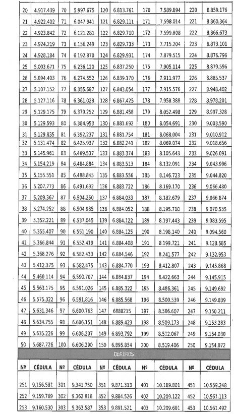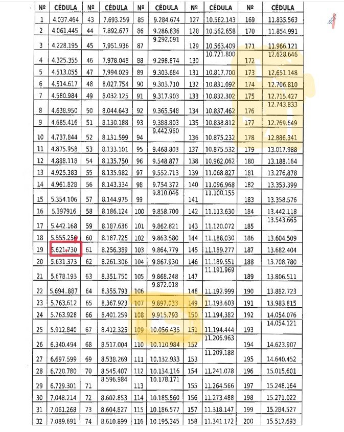 Los nombres y cédulas comienzan a aparecer a partir de la página N° 16 de la Gaceta mencionada.