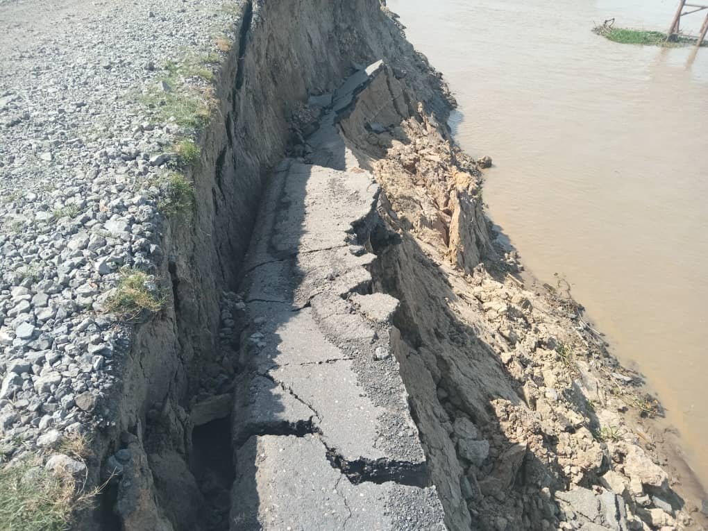 La fuerza erosiva del río Apure ha comprometido seriamente la estructura vial en este sector, reduciendo la calzada de asfalto a la mitad.