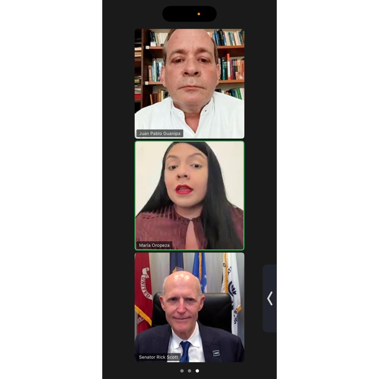 Los dirigentes opositores y expresos políticos, Juan Pablo Guanipa y María Oropeza, informaron la tarde de este lunes 9 de marzo que sostuvieron una reunión virtual con el senador republicano estadounidense Rick Scott, en la que abordaron la situación política de Venezuela y la necesidad de lograr la liberación de todos los presos políticos.