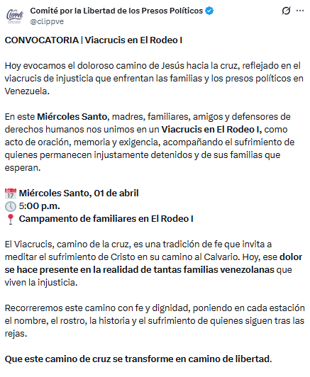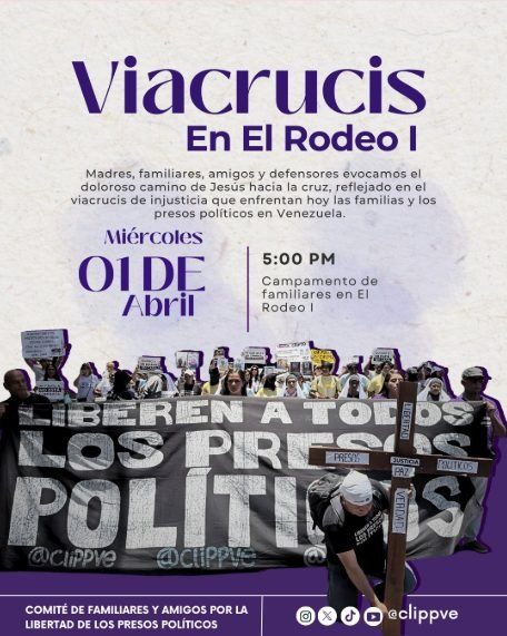 El Comité por la Libertad de los Presos Políticos convocó para este Miércoles Santo, 1 de abril, al «Viacrucis en El Rodeo I».