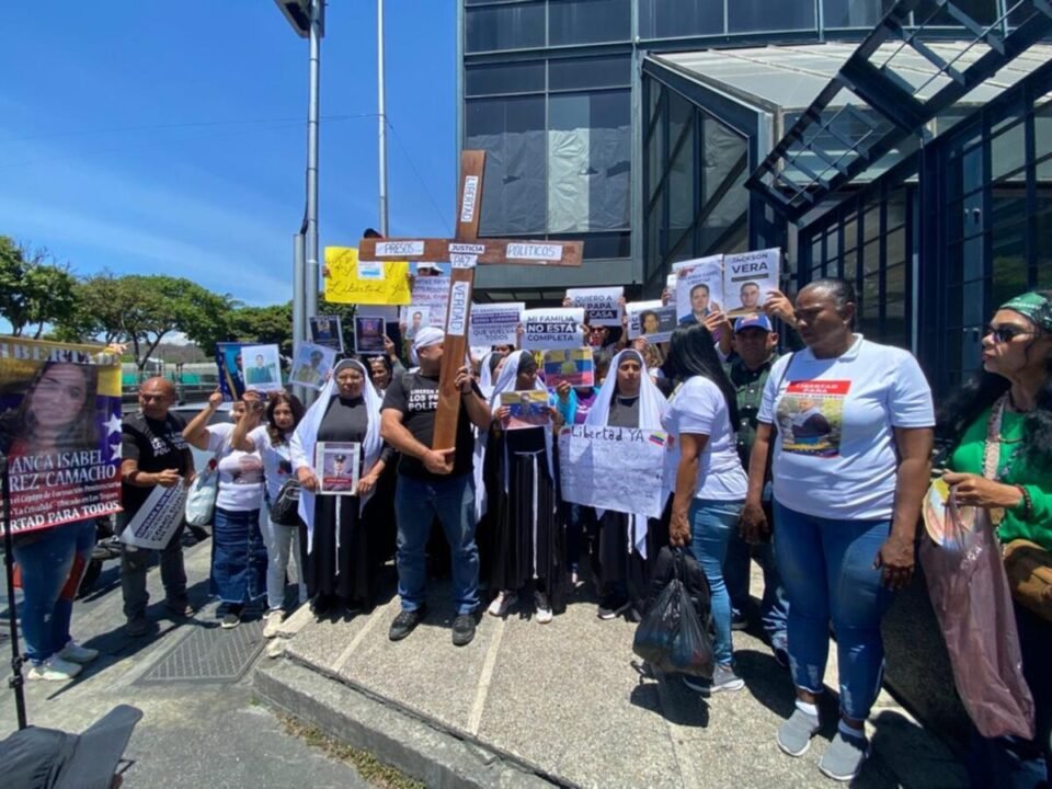 Desde las afueras de la sede diplomática, Andreina Baduel hizo un llamado a las autoridades de la Iglesia católica para que se reúnan con los familiares de los presos políticos y escuchen sus historias.