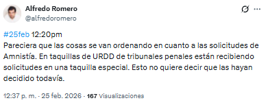 Durante el inicio de la jornada, abogados y familiares reportaron que los tribunales se negaban a recibir los documentos. Según Romero, la apertura de este canal sugiere que «las cosas se van ordenando».