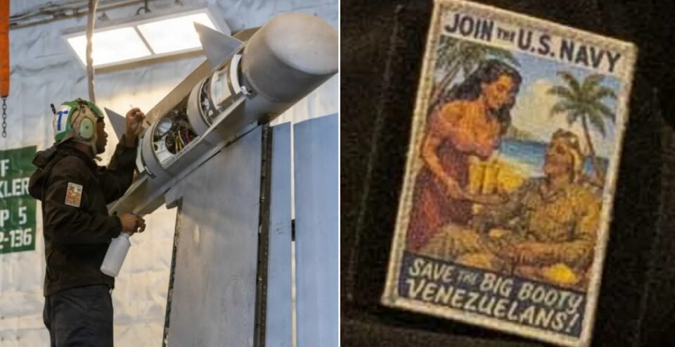 El parche tenía la frase «Join the US Navy: Save the big booty Venezuelans», que puede traducirse en español como «Únete a la Marina: Salva a las venezolanas de trasero grande».