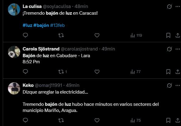 • Zulia: En San Francisco, los usuarios reportaron que tras el «bajón», algunos sectores quedaron sin suministro y denunciaron hasta 4 horas de racionamiento previo.