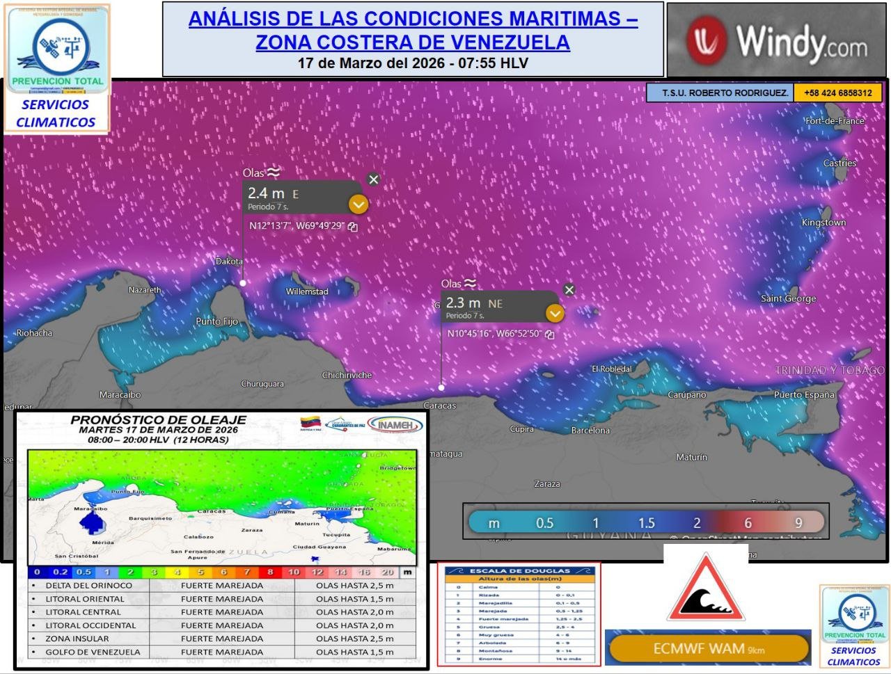 Esta condición se extenderá en la próximas horas y las recomendaciones son tomar previsiones, ya que en las zonas costeras hay oleajes sobre los 2,3 metros, por lo que se recomienda a los pescadores a que tengan mucho cuidado.