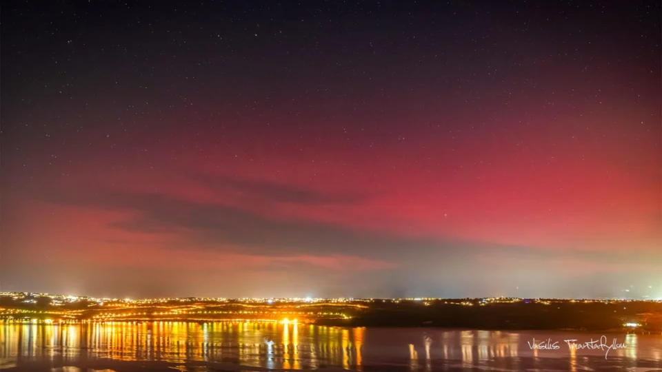 Una extraña tormenta geomagnética solar ha provocado la aparición de una aurora boreal visible en distintas partes de Grecia en la noche del lunes al martes, un fenómeno que normalmente no se observa en latitudes tan al sur.