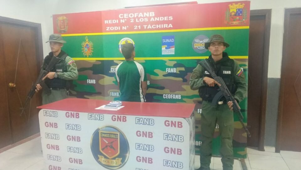 «La FANB a través de efectivos adscritos al DCR-21-2 ‘Tres Islas’ del CZGNB-21 (Táchira), en perfecta fusión popular-militar-policial, logró la aprehensión de un ciudadano», anunció la GNB en una publicación de X.