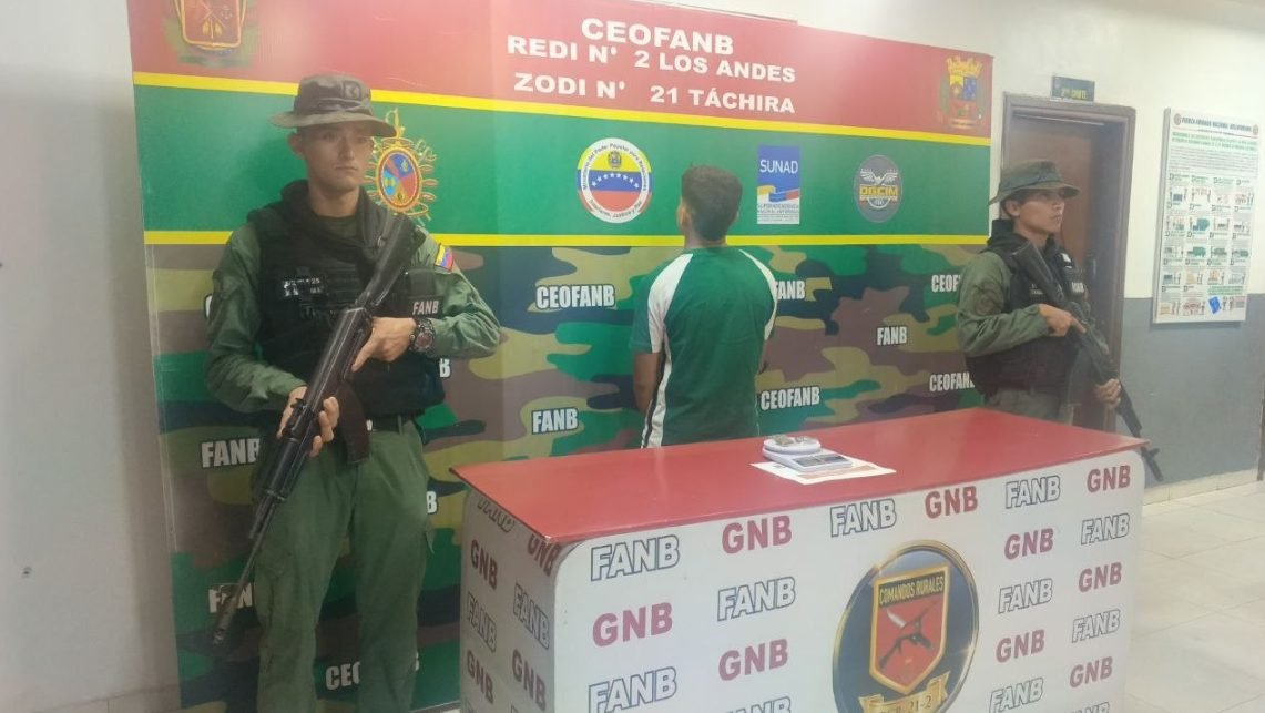 Uniformados de la Guardia Nacional Bolivariana (GNB) efectuaron la captura de un ciudadano en el estado Táchira por poseer tres dosis de presunta marihuana con un peso bruto de 0,01 kilos.