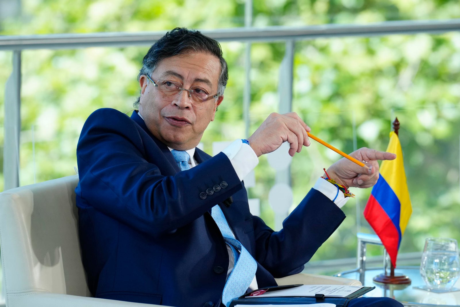 El presidente Colombia, Gustavo Petro durante la segunda entrega de ‘Los Desayunos’ de RTVE y la Agencia EFE celebrado este viernes en Barcelona, España. EFE/ Alejandro Garcia