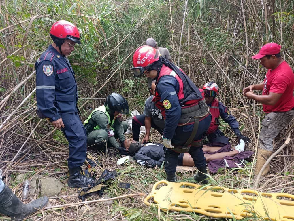 El funcionario detalló que los equipos garantizaron el traslado seguro del afectado, quien presenta traumatismos severos producto de la caída.
