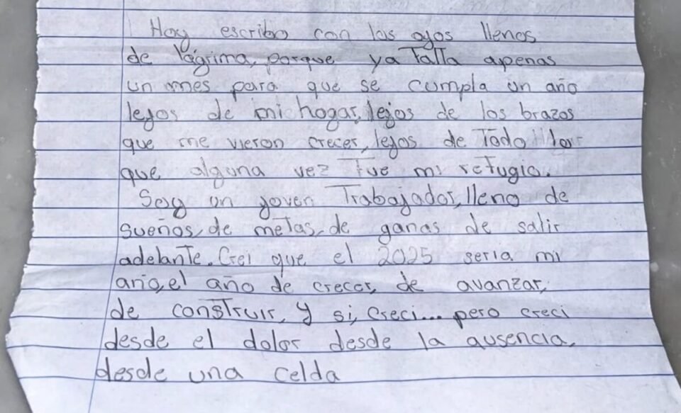 Contó que a inicios de 2025 veía ese mismo año como una oportunidad de crecer y alcanzar sus metas. No obstante, sus objetivos se vieron pausados por su detención. “Crecí, pero desde el dolor, desde la ausencia, desde una celda”.