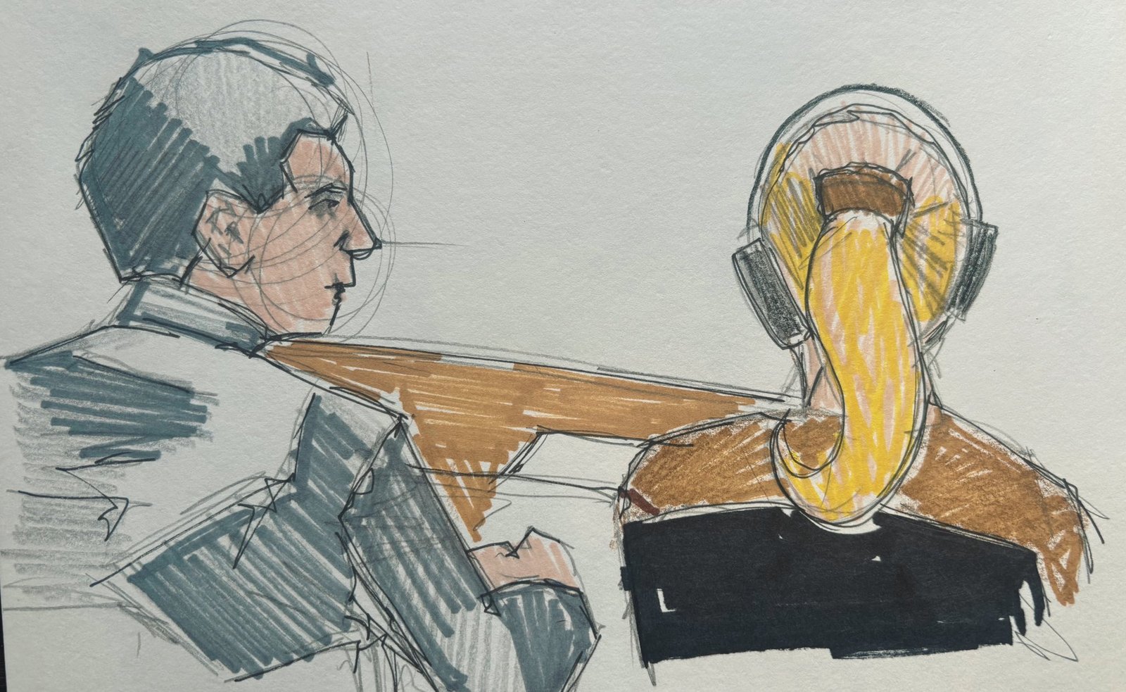 Para concluir, la ilustradora precisó las estrictas medidas de seguridad bajo las cuales comparecieron ante el juez federal: «No esposados de manos, pero si de pies». Relató que al finalizar la sesión, ambos pudieron despedirse de su equipo legal. «Al final del juicio sonrieron y se despidieron solo de ellos (sonrisa que no convence, entre nervios y muy bien manejados sus tiempos)», sentenció Ballesteros.