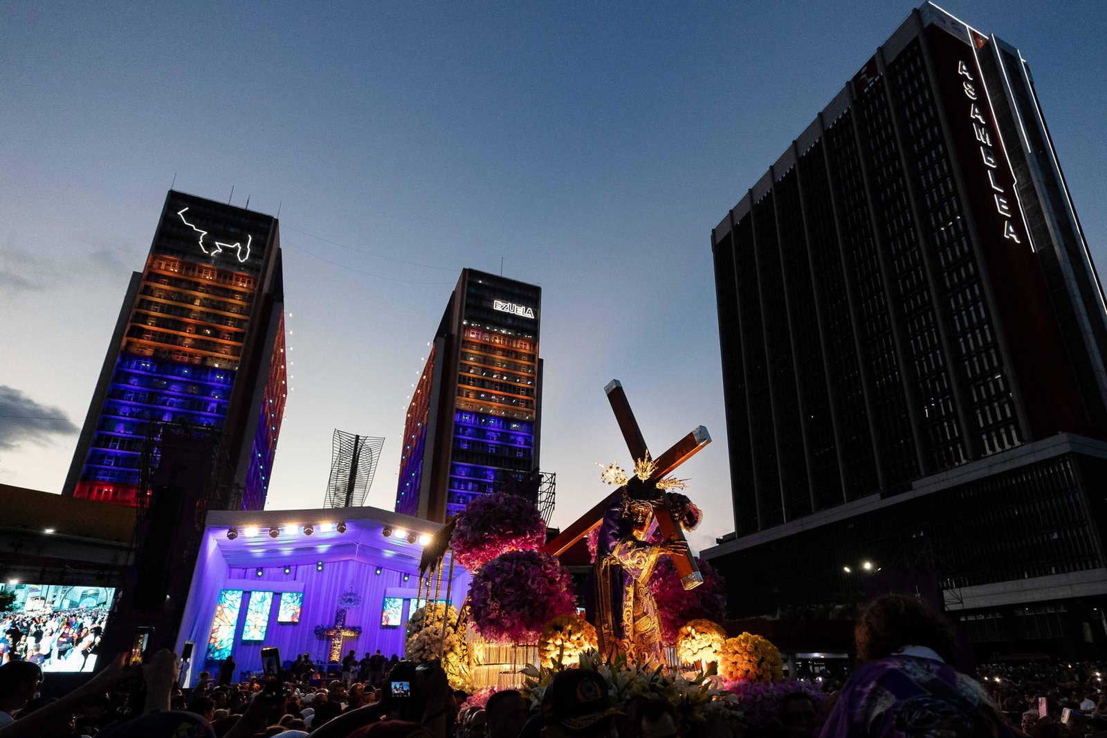 La imagen fue trasladada en un recorrido por distintas zonas de la capital venezolana, mientras los fieles acompañaban su paso vistiendo ropa y prendas moradas, color que simboliza la penitencia y la preparación espiritual.