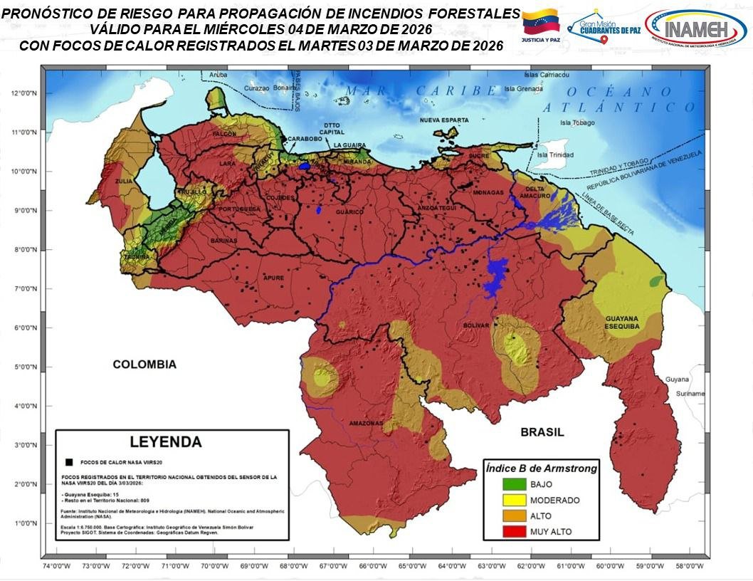 Asimismo, se estiman precipitaciones de mayor intensidad en áreas al sur del Lago de Maracaibo y en los Andes.
