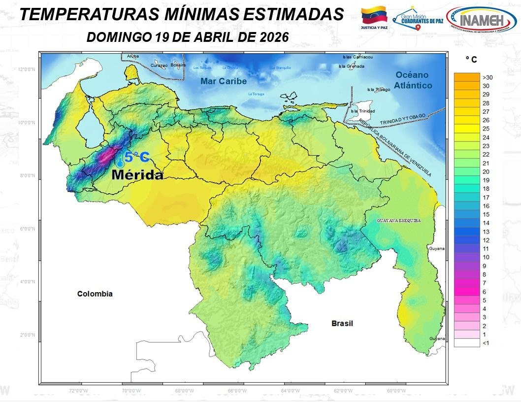 Asimismo, el Inameh señaló que se mantienen condiciones variables entre nubosidad y zonas despejadas, aunque con precipitaciones en sectores de la Guayana Esequiba, Bolívar, Amazonas, Guárico, Los Andes y Zulia.