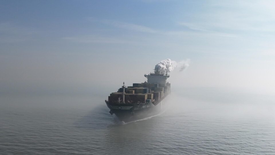 Una imagen de dron muestra una vista aérea del MSC Ela, registrado en Panamá (OMI 9282259), saliendo del puerto de Amberes, cerca de Hansweert, Países Bajos, el 4 de marzo de 2026. La Comisión Europea presentará las Estrategias Industriales, Marítimas y Portuarias de la UE tras el cierre del Estrecho de Ormuz en medio de la escalada del conflicto regional, que genera una creciente preocupación por el suministro mundial de petróleo. (Países Bajos; Países Bajos, Amberes) EFE