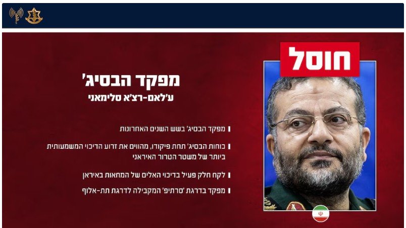 «Ayer (lunes), la Fuerza Aérea Israelí, actuando con base en información de inteligencia de las FDI, atacó y eliminó a Gholamreza Soleimani, quien se desempeñó como comandante de la unidad Basij durante los últimos seis años», indicaron las Fuerzas de Defensa de Israel en un comunicado.