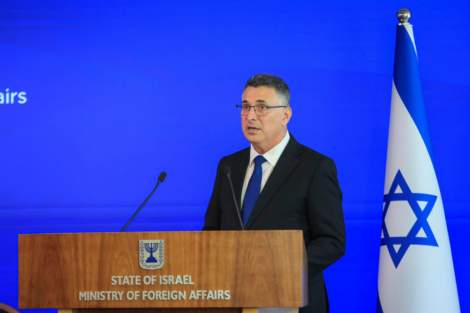 El ministro de Asuntos Exteriores israelí, Gideon Saar, durante la rueda de prensa conjunta con su homólogo checo, Petr Macinka (no aparece),este martes en Jerusalén. EFE/ Magda Gibelli