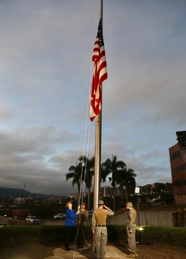 Laura Dogu, encargada de negocios de Estados Unidos, izó en la madrugada de este sábado la bandera de su país en la embajada norteamericana en Caracas, justo siete años después de la última vez.