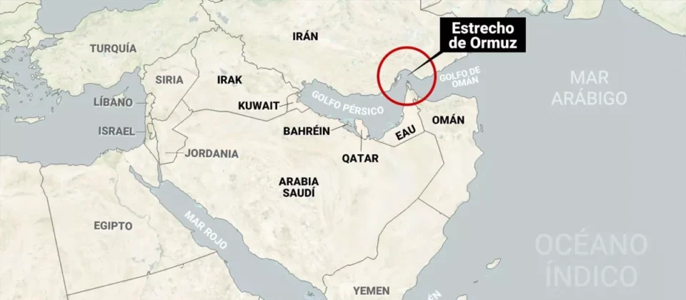 El estrecho de Ormuz, punto de importancia estratégica mundial que separa las costas de Irán y Omán, se encuentra entre el Golfo Pérsico y el Golfo de Omán y por sus aguas se transporta alrededor del 20 % de la producción mundial de crudo y también de gas.
