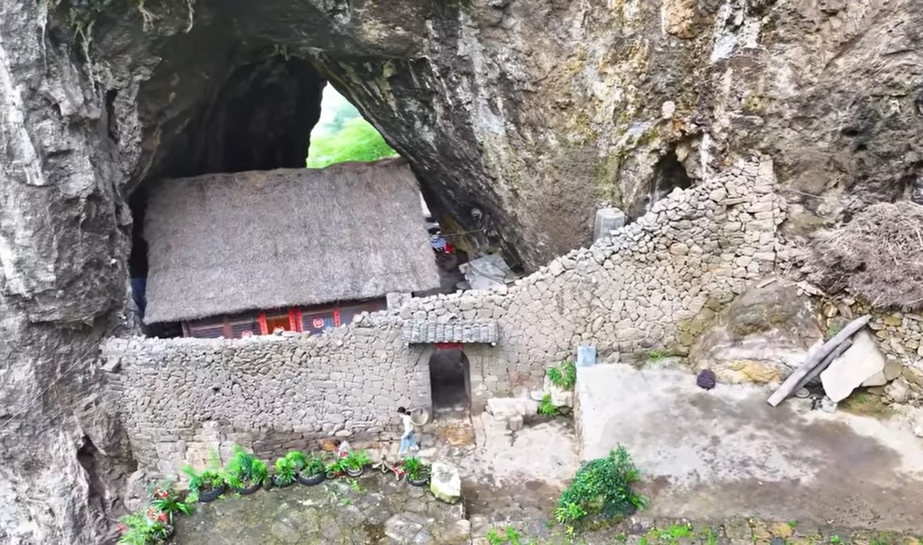 La vivienda, una abertura natural en la roca, fue adaptada y consolidada con piedra, adobe y madera. “Nunca la remodelaron, simplemente usan el pasto que crece ahí mismo”, detalló Qingyunji en el video y contó que “la construyeron poco a poco”.