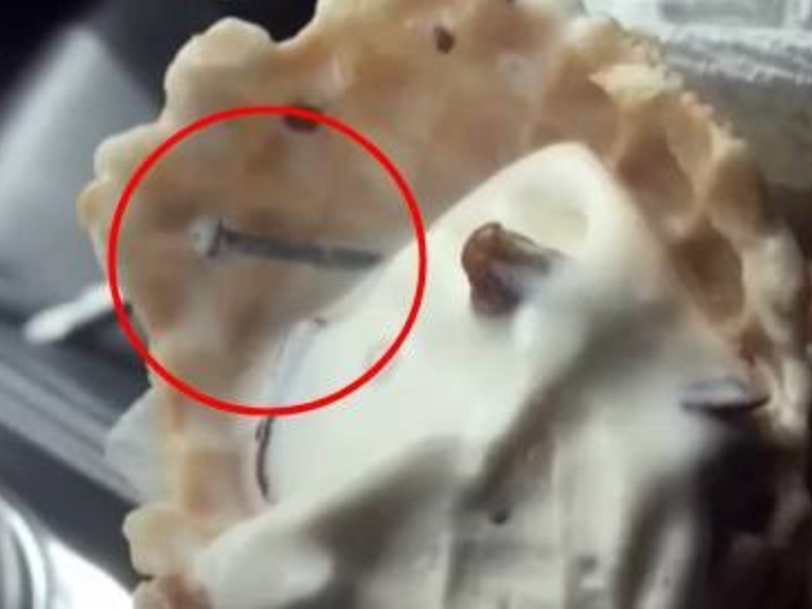 Una mujer y su hijo fueron a una heladería en Palm Bay, Florida, Estados Unidos, y pidieron sus sabores de helado favoritos. Brandy Buckley eligió un cono de crema de mantequilla con nueces pecán, disfrutó de varios bocados, y de repente, cuando estaba esperando para cruzar en un semáforo miró con detenimiento su cucurucho y vio lo que parecía ser un clavo.