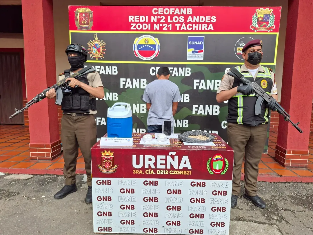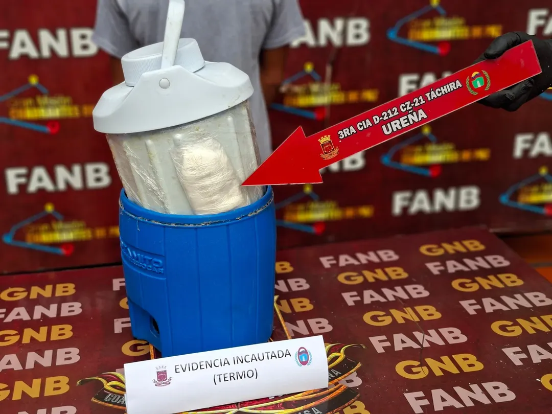 Funcionarios de la Guardia Nacional Bolivariana (GNB) detuvieron este viernes a un hombre que cruzó la frontera desde Colombia hacia el estado Táchira con cocaína oculta en un termo refrigerante.