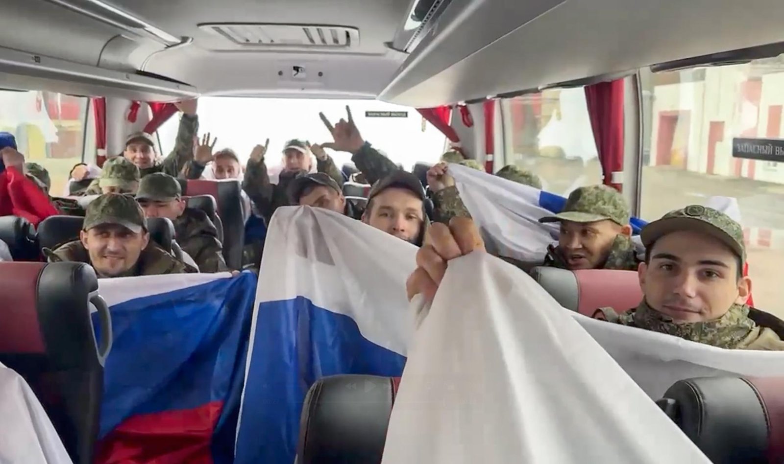 Una imagen fija tomada de un vídeo facilitado por el servicio de prensa del Ministerio de Defensa ruso muestra a prisioneros de guerra rusos reaccionando tras un intercambio de prisioneros en un lugar no revelado de Bielorrusia, el 11 de abril de 2026. EFE/EPA/SERVICIO DE PRENSA DEL MINISTERIO DE DEFENSA RUSO