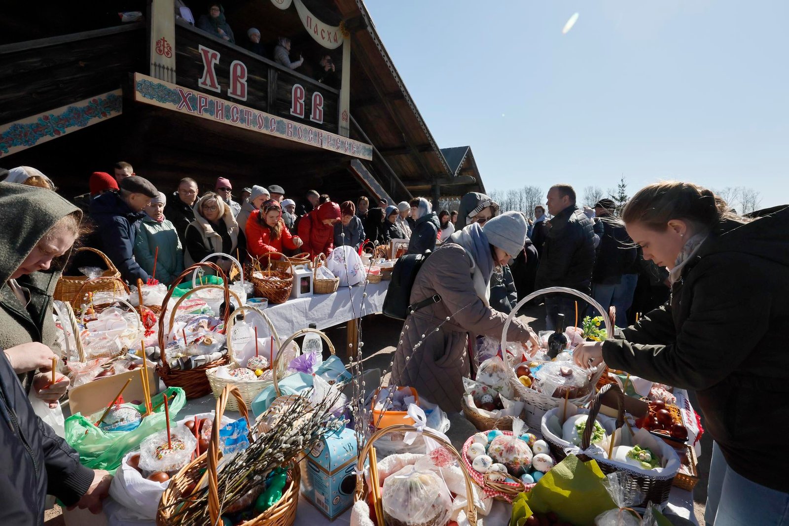 Fieles ortodoxos rusos celebran la Pascua ortodoxa en la Iglesia de la Intercesión de la Madre de Dios en Nevsky Lesopark, a las afueras de San Petersburgo, Rusia, el 11 de abril de 2026. EFE/EPA/ANATOLY MALTSEV
