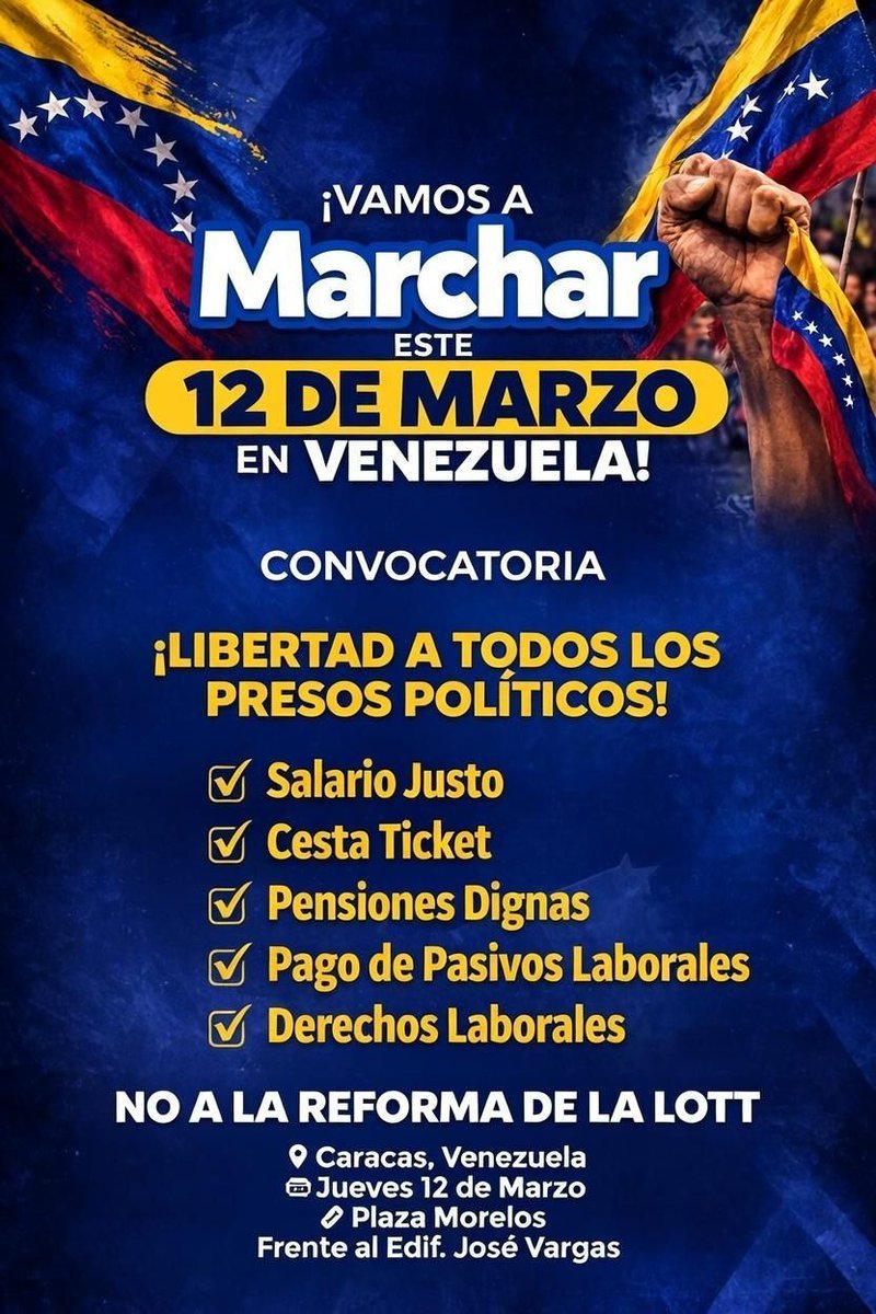 Este 12 de marzo, trabajadores y estudiantes venezolanos tienen previsto tomar las calles en una movilización nacional para exigir mejoras salariales y el rescate de sus beneficios laborales.