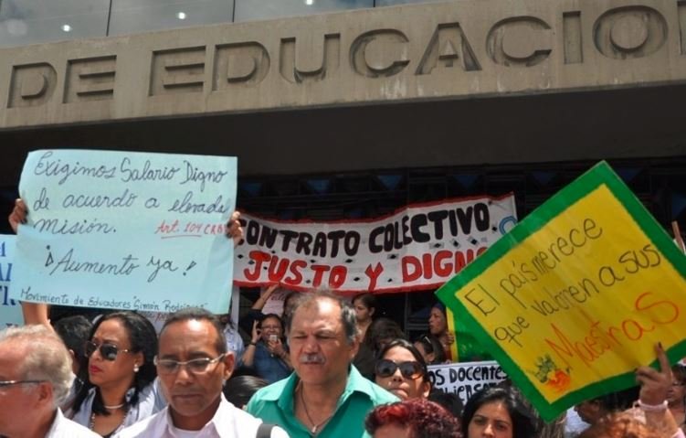 La Federación Venezolana de Maestros (FVM) convocó este viernes 17 de abril al sector educativo, a una jornada nacional de asambleas de trabajadores el 22 de abril por un sueldo «justo, suficiente y digno», tras más de cuatro años sin un aumento del salario mínimo, equivalente hoy a unos 27 centavos de dólar al mes.