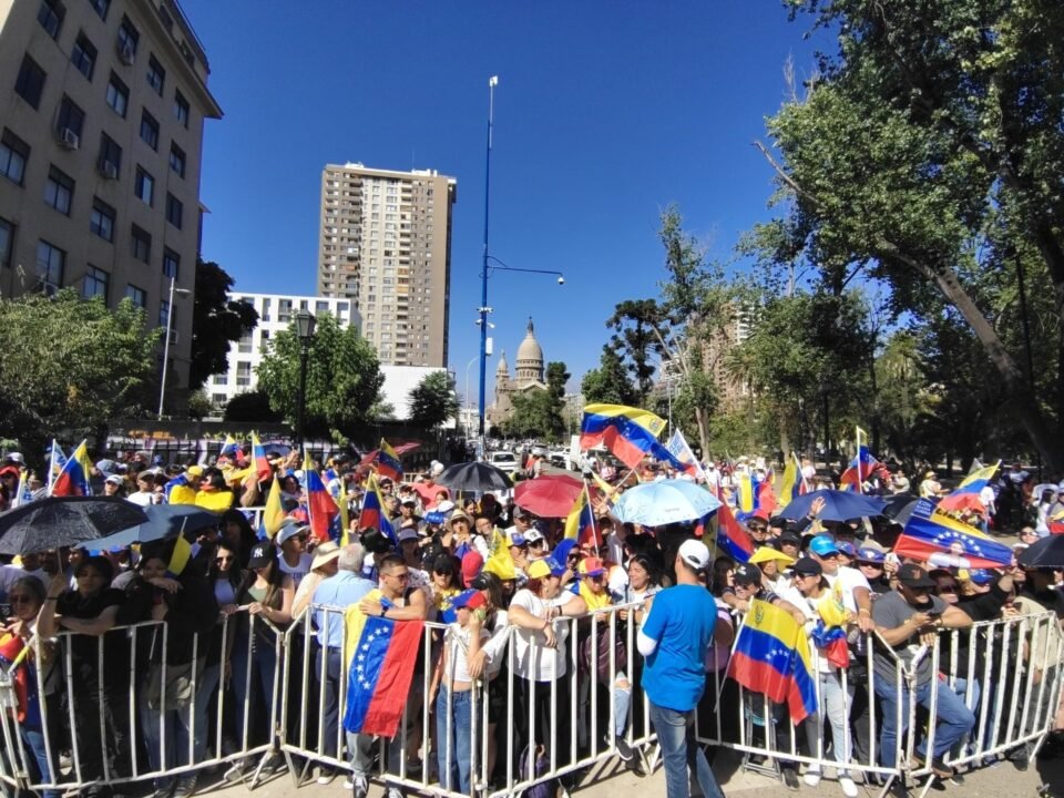 La líder opositora María Corina Machado encabeza este jueves 12 de marzo una multitudinaria concentración con la comunidad venezolana residente en el parque Almagro, en Santiago de Chile, como parte de su agenda política en la nación suramericana.