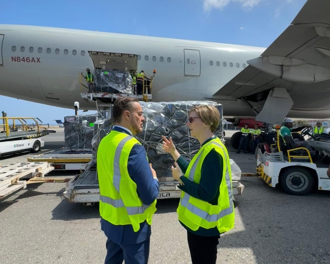 A través de un proceso de búsqueda inversa, se pudo ubicar en Infobae la fotografía publicada junto con el nuevo bulo. En ella se observa el arribo de 65 toneladas de medicinas e insumos médicos a Venezuela el 21 de febrero de 2026, siendo supervisado por Laura Dogu, entonces Encargada de Negocios de EE. UU. en Venezuela, y Félix Plascencia, representante venezolano para las relaciones con ese país.