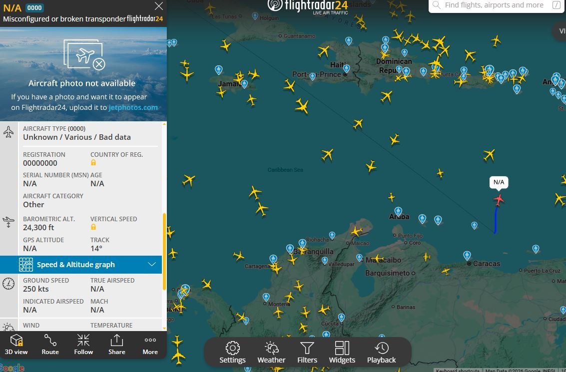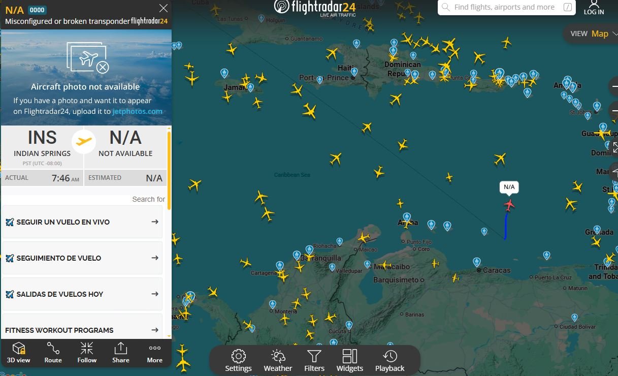 Los radares civiles de FlightRadar24 encendieron las alarmas de los entusiastas de la aviación, luego de que una aeronave «fantasma», con transpondedor desconfigurado y origen en una de las bases de drones más críticas de Estados Unidos, fue detectada sobrevolando el FIR Maiquetía, a pocos kilómetros de las costas venezolanas.